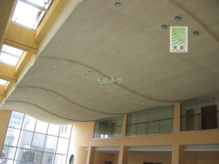 上海大學(xué)游泳館工程使用了1200方的木絲吸音板,安裝在天花,不僅美觀。對各種頻段的吸聲效果的很明顯,可以有效避免回聲。