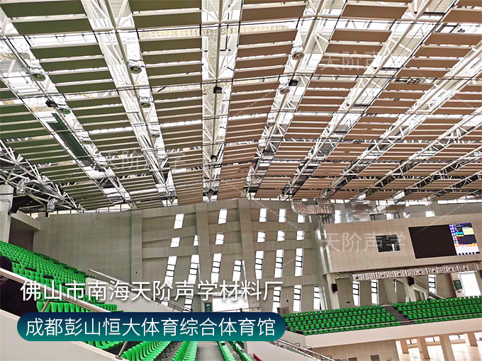 成都彭山恒大體育綜合體育館項(xiàng)目,墻面使用槽木吸音板,基材選用不燃堅(jiān)硬的玻鎂基材,飾面選用活力青春的色調(diào)。條形開槽吸音板,吸音效果顯著,能吸收活動(dòng)期間的噪音,回聲。