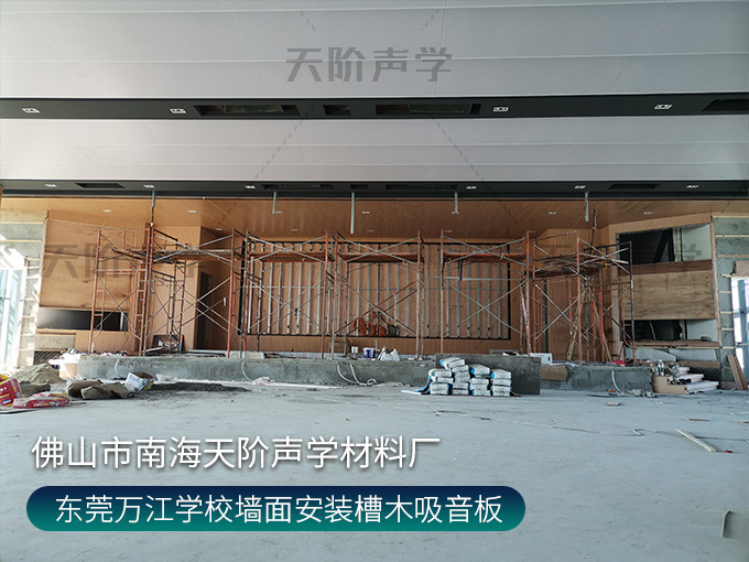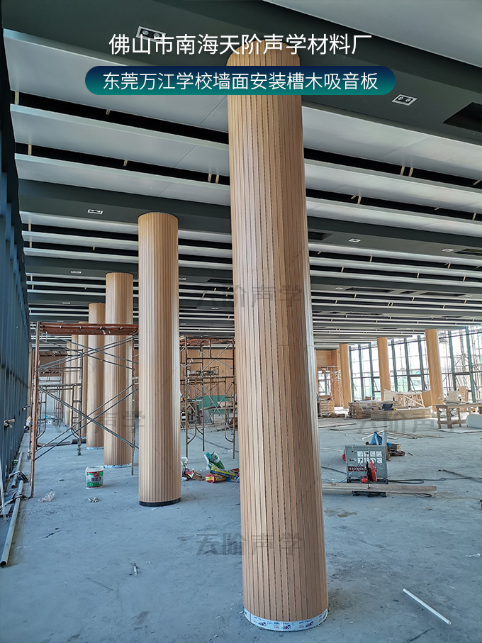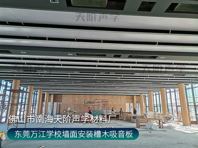 東莞萬(wàn)江學(xué)校墻面安裝槽木吸音板