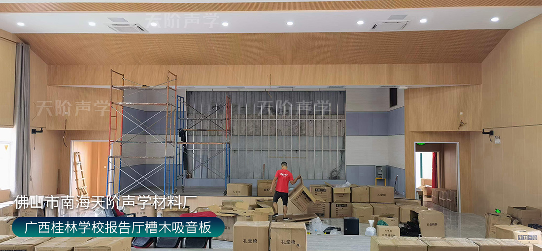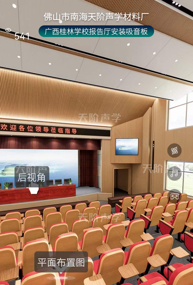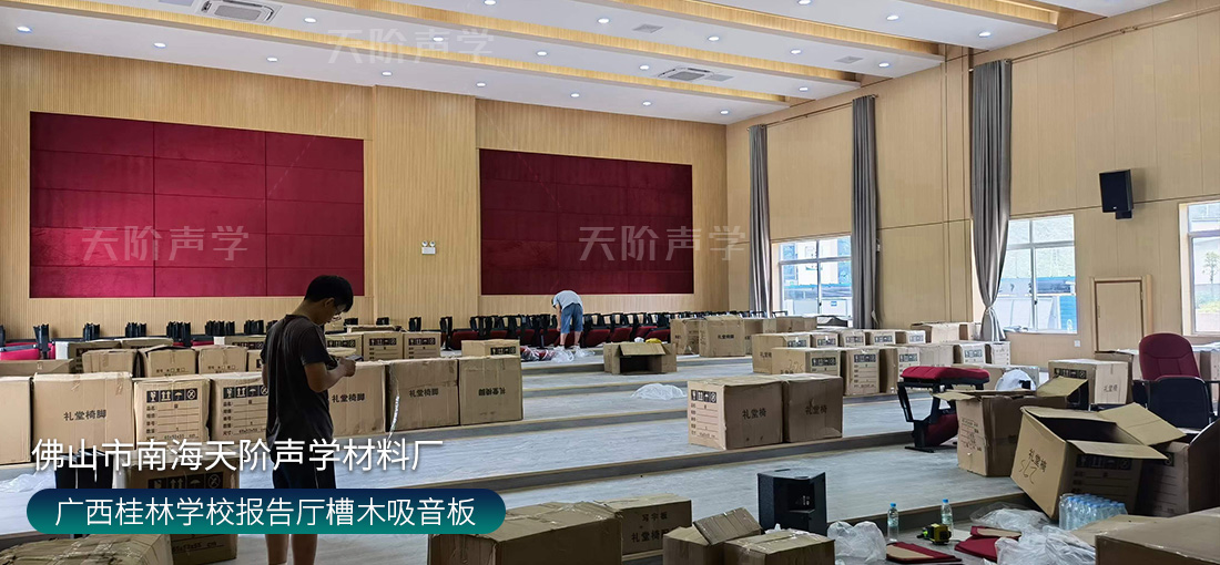 廣西桂林學(xué)校報(bào)告廳安裝吸音板效果圖
