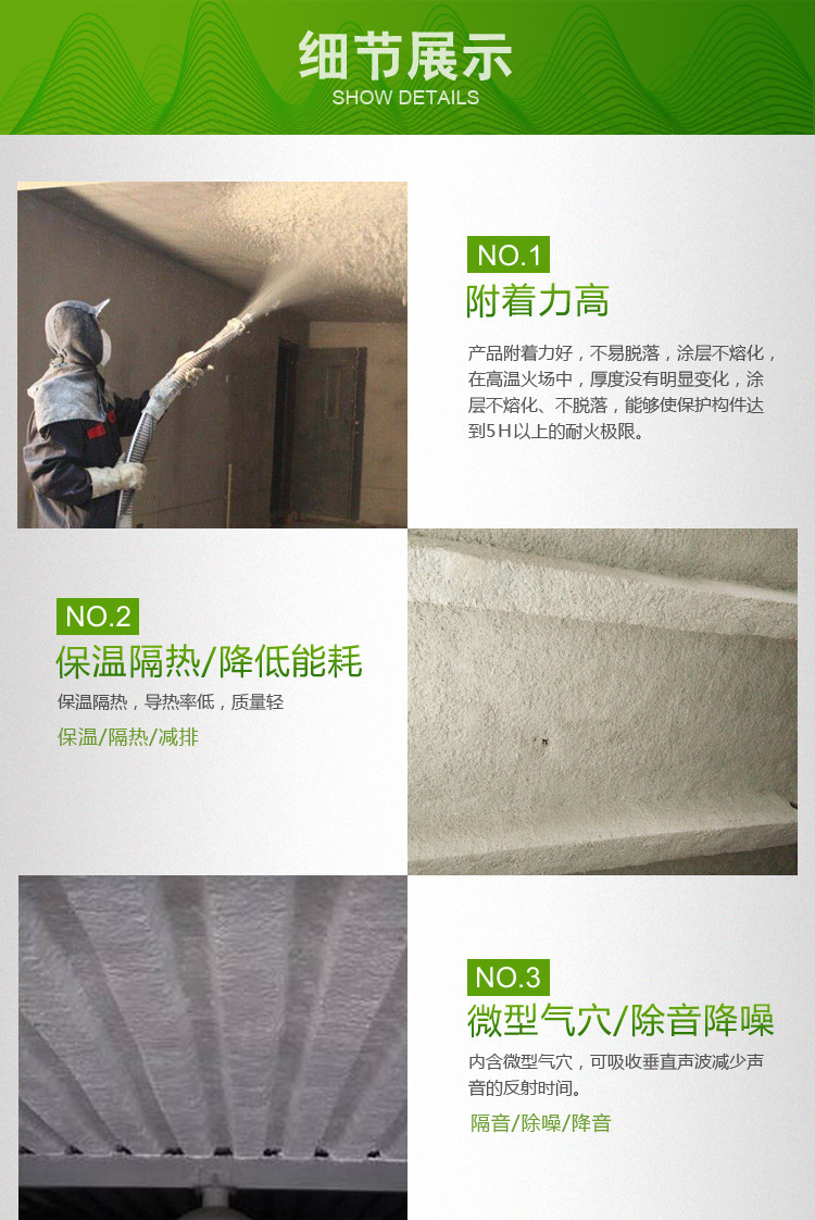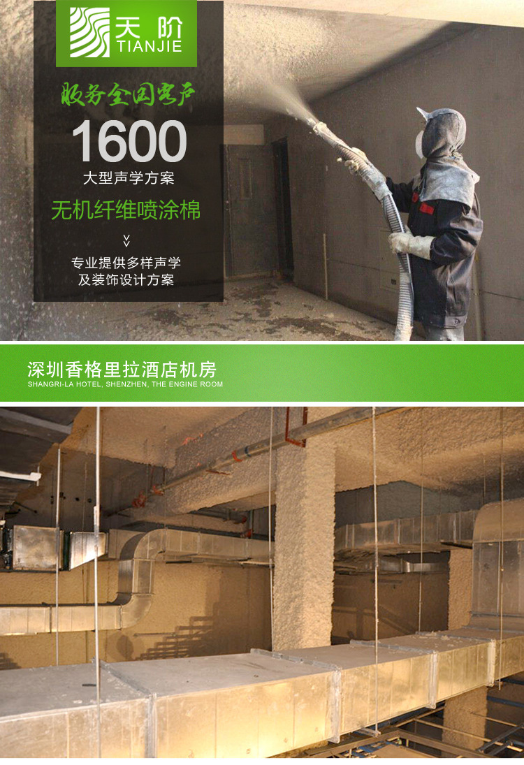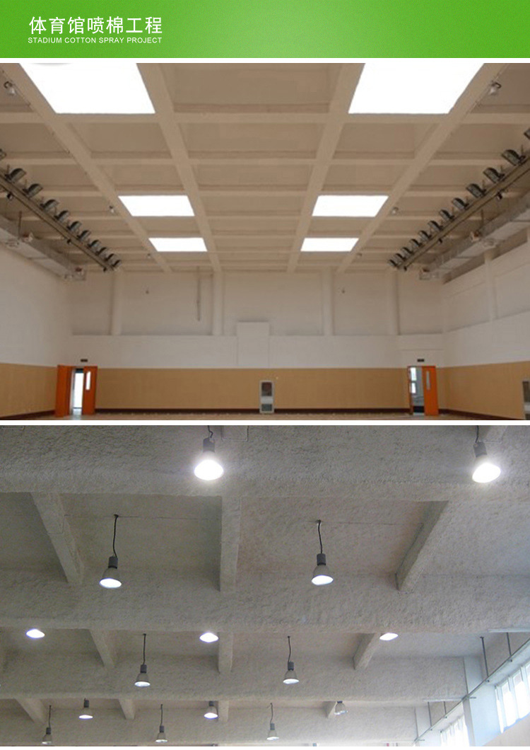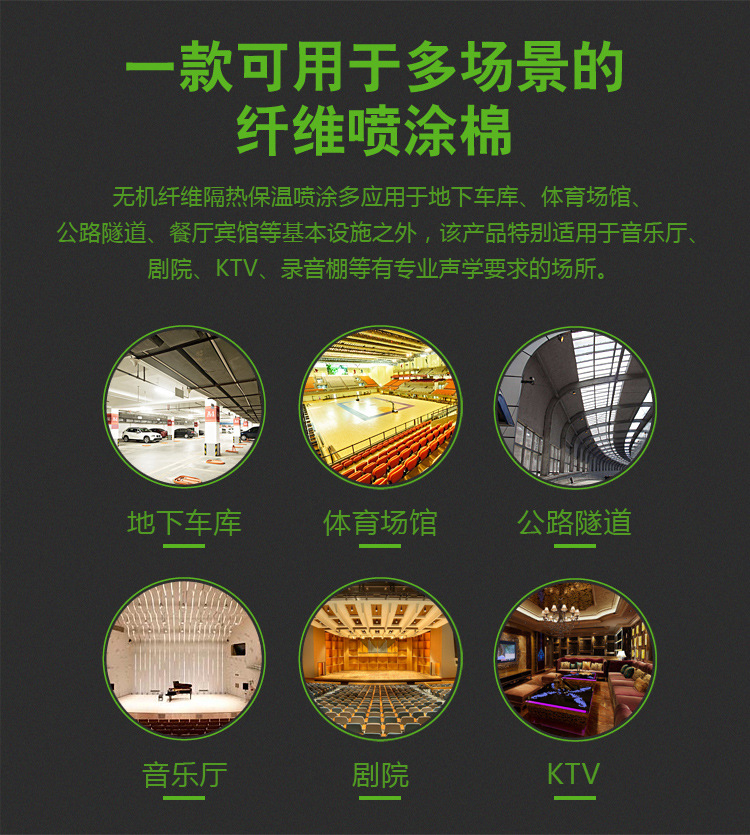 無(wú)機(jī)纖維隔熱保溫噴涂除能應(yīng)用于地下車庫(kù)、體育場(chǎng)館、公路隧道、餐廳賓館等基本設(shè)施之外,該產(chǎn)品特別適用于音樂(lè)廳、劇院、KTV、錄音棚等有專業(yè)聲學(xué)要求的場(chǎng)所。