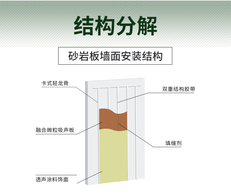 砂巖吸音板,精選特定目數的天然砂粒,將膠凝材料 均勻且極薄地覆蓋于全部微粒表面,形成特定角形系數 的覆膜微粒。該微粒在外力作用下,覆膜層固化,使微小顆粒就像被焊接一樣聚合在一起,微粒之間天然地形成了大量的、不規(guī)則的、相互連通的微小孔隙。