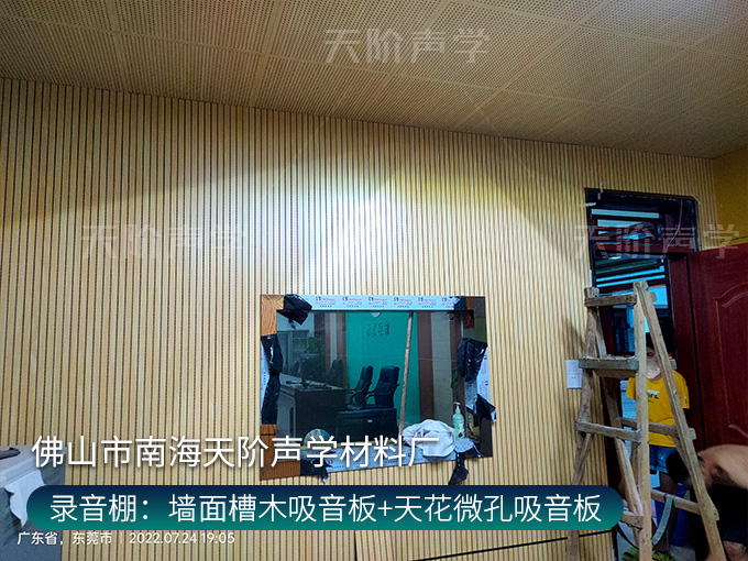 錄音棚:墻面槽木吸音板+天花微孔吸音板