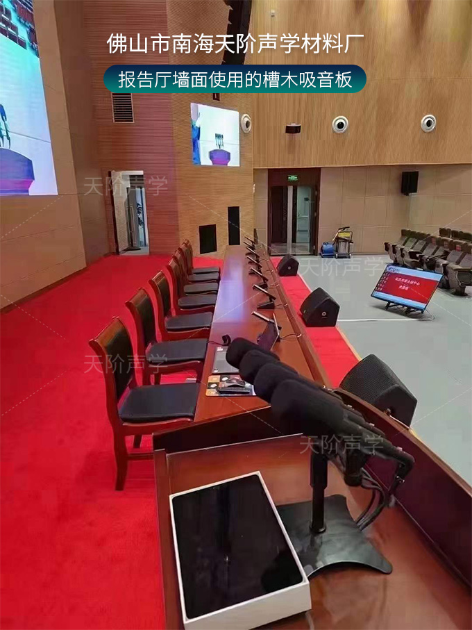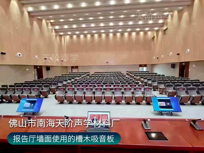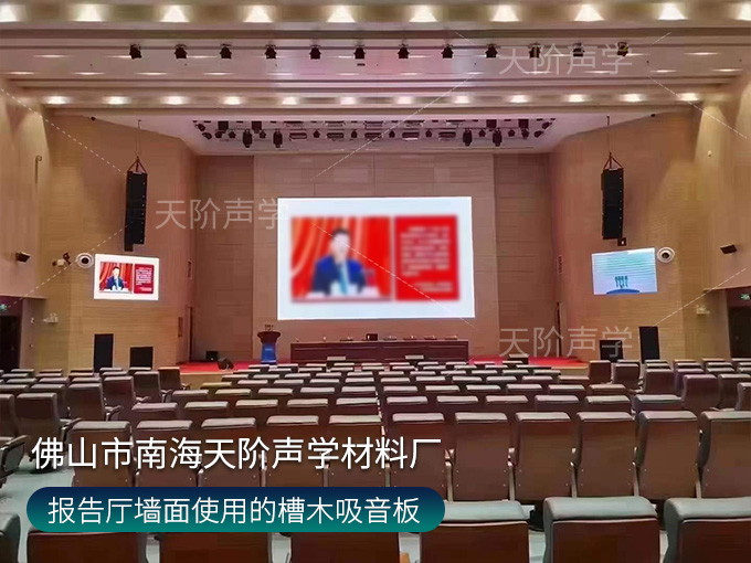 大型報告廳墻面安裝槽木吸音板