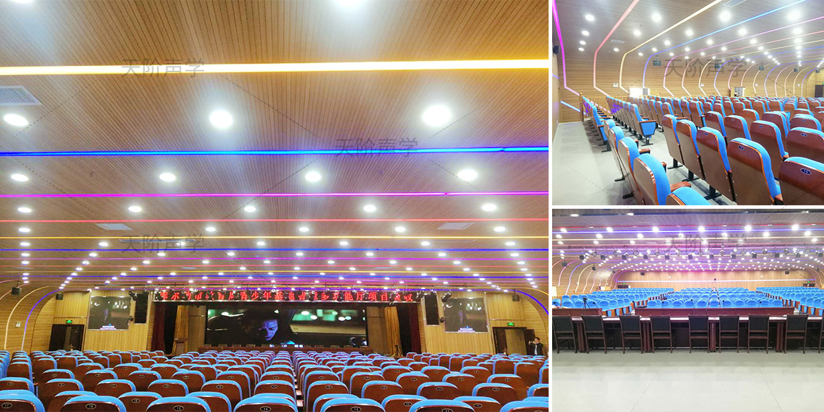 • 香港九龍婦女紀念學校禮堂,墻面安裝木質(zhì)吸音板香港九龍婦女紀念學校禮堂,墻面安裝木...