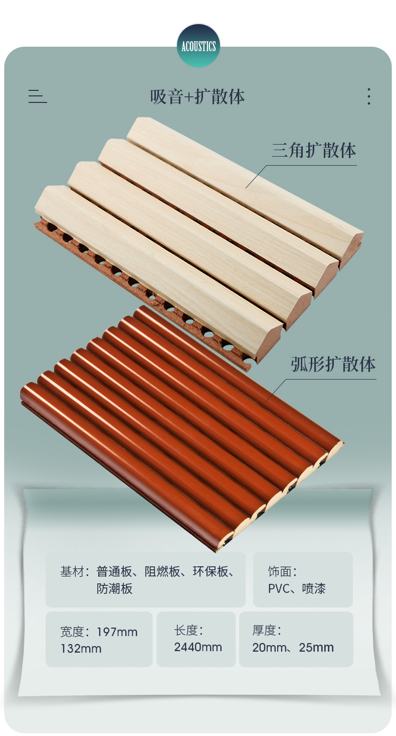 您現(xiàn)在的位置首頁(yè) ? 槽木木質(zhì)吸音板 - 軟包 - 防火吸音板 - 聲學(xué)產(chǎn)品 ? 擴(kuò)散體體育館聲學(xué)弧形擴(kuò)散體