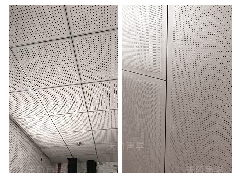 孔木吸音板是一種在密度板上直接穿孔的共振吸聲材料??啄疚舭鍖?duì)吸聲頻譜選擇性較強(qiáng),對(duì)低頻有很好的吸聲性能。如在吸聲結(jié)構(gòu)后空腔上填入適量的吸聲棉可提高中、高頻吸聲效果。