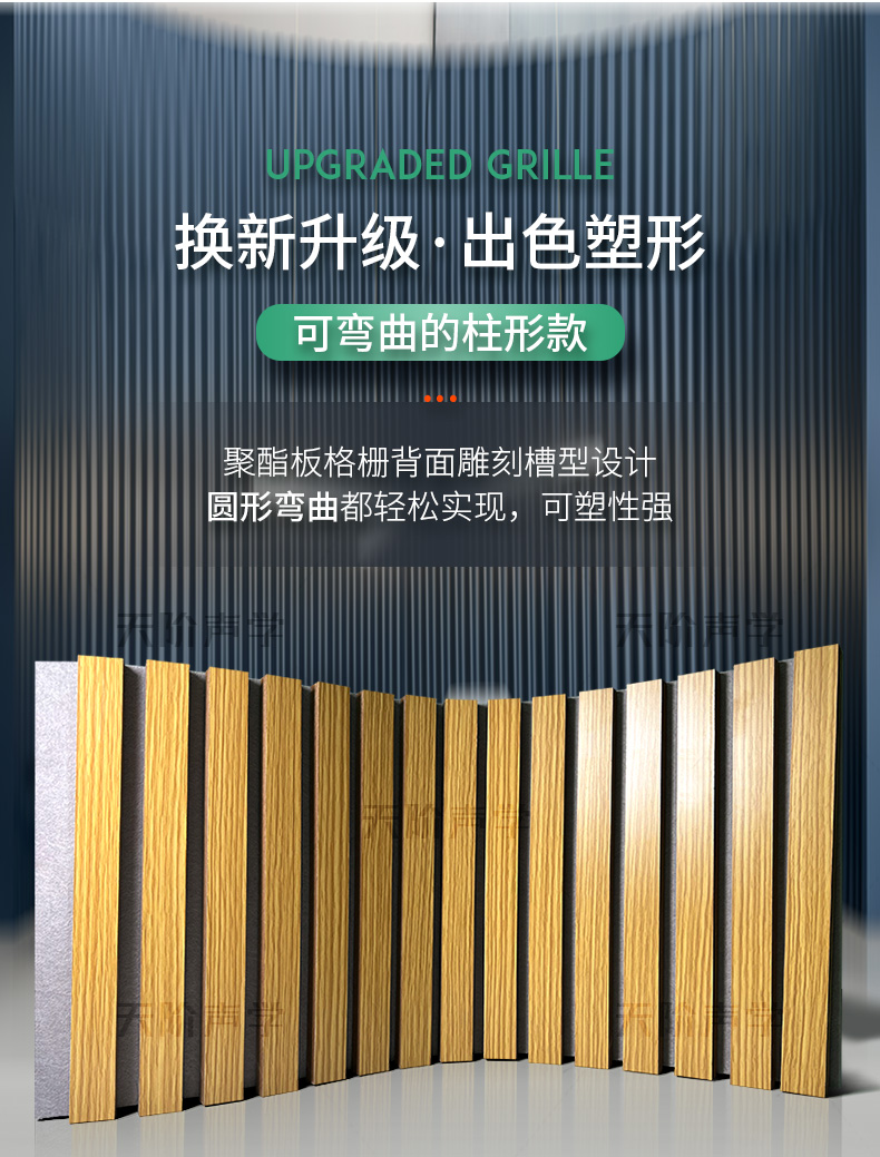 您現(xiàn)在的位置首頁 ? 槽木木質(zhì)吸音板 - 軟包 - 防火吸音板 - 聲學(xué)產(chǎn)品 ? 格柵板背景墻聚酯板格柵板