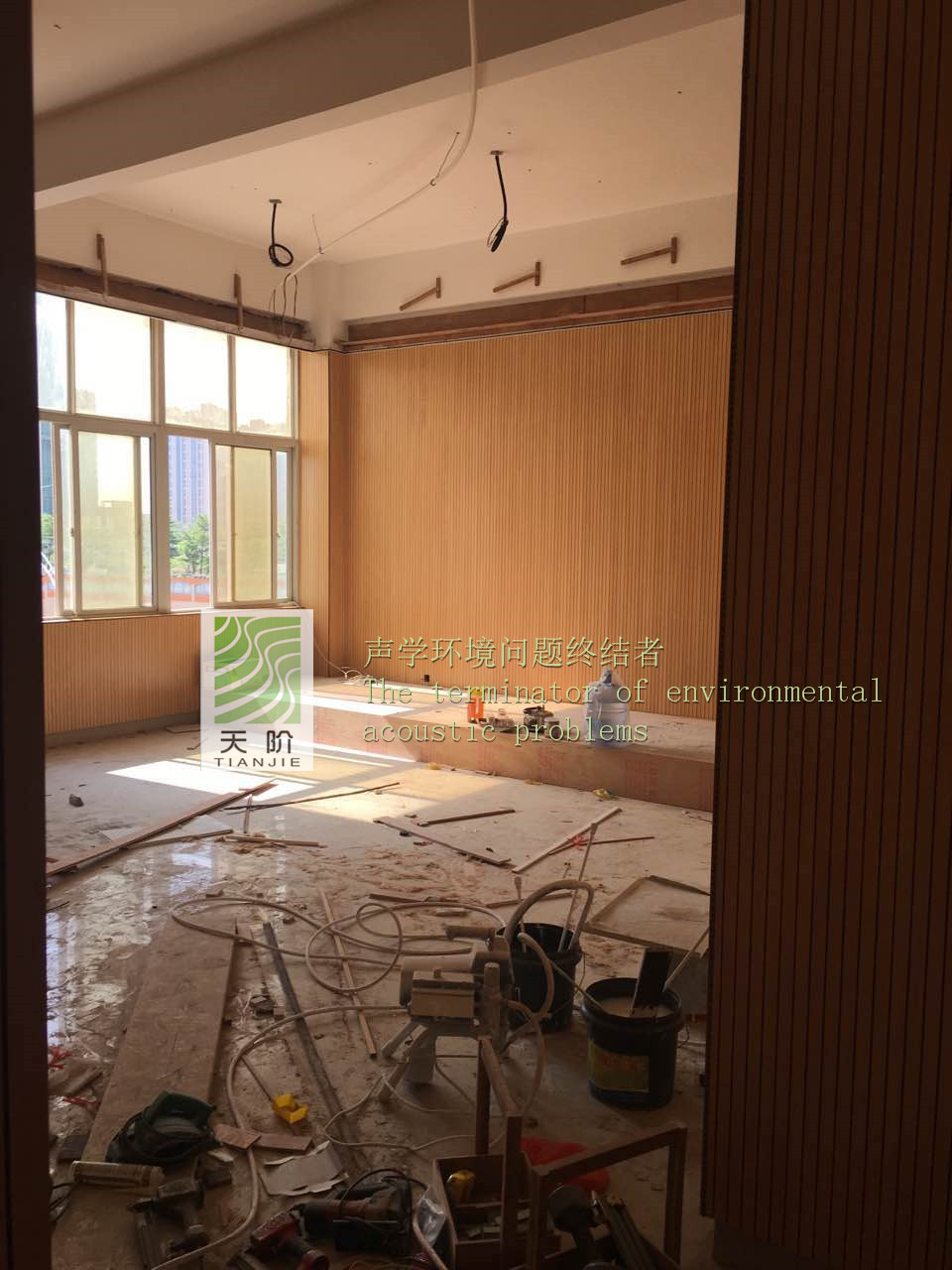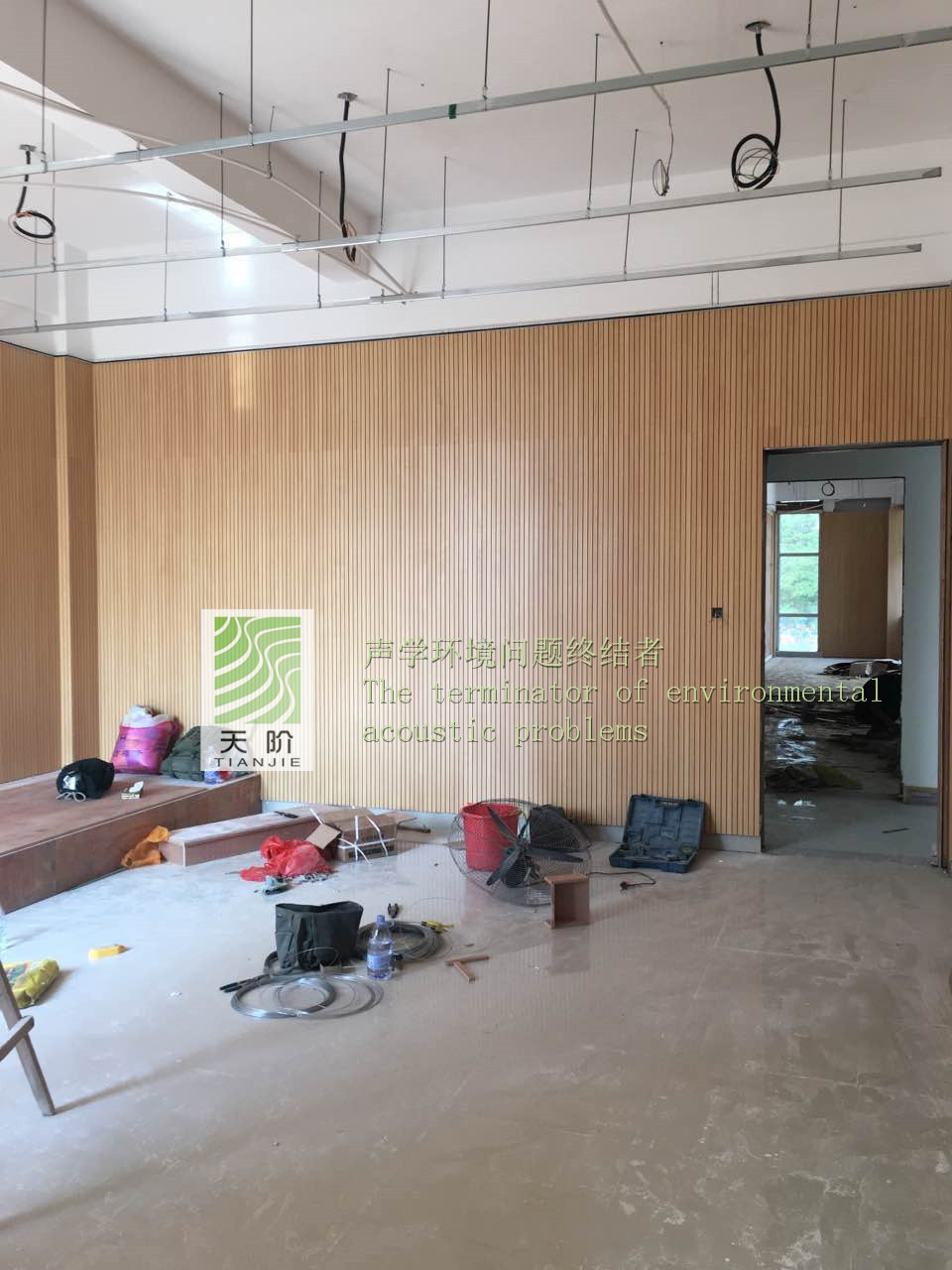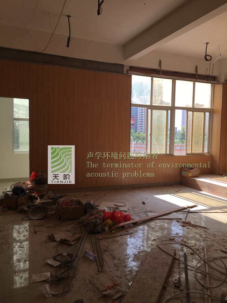 福建省泉州市惠安縣政府對(duì)青少年宮非常的重視,特地邀請(qǐng)了專家對(duì)舞蹈室、鋼琴室、教室進(jìn)行了吸音設(shè)計(jì)。教室的聲學(xué)設(shè)計(jì)應(yīng)以語(yǔ)言清晰度為主,教室的混響時(shí)間長(zhǎng)短、背景噪聲、響度對(duì)語(yǔ)言清晰度影響最大。不同大小的教室,對(duì)混響時(shí)間長(zhǎng)短的要求會(huì)有所不同。教學(xué)場(chǎng)所要求較高的語(yǔ)言清晰度,需要較短的混響時(shí)間,可以通過(guò)室內(nèi)選用合理的吸音材料和現(xiàn)場(chǎng)裝修布置達(dá)到。室內(nèi)墻面是聲學(xué)裝修時(shí)面積最大可供利用的表面,所以決定在四周的墻面上安裝槽木吸音板,此時(shí)使用了我們天階牌的槽木吸音板共2000平方。