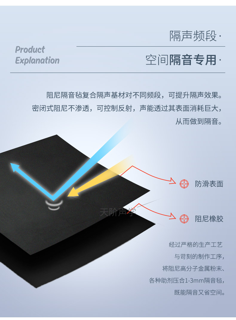 阻尼隔音氈以高純度精細(xì)鐵粉為原料,應(yīng)用新的減震隔音技術(shù),開(kāi)發(fā)研制出針對(duì)地板、墻壁、管道的隔音材料。能夠有效地阻隔外界的噪聲,營(yíng)造一個(gè)安全、安靜、舒適的環(huán)境。